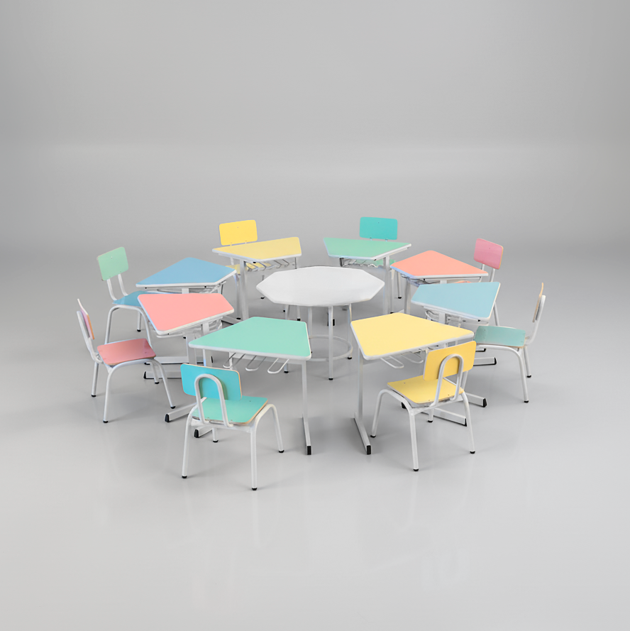 Uso: Em escolas, colégios, kumons, salas de treinamento em geral com grande fluxo de usuários, muito resistente a multiplas limpezas diárias. Sua estrutura monobloco garante uma longa durabilidade sem apresentar desgaste e sem necessidade de ajustes e reapertos de parafusos.